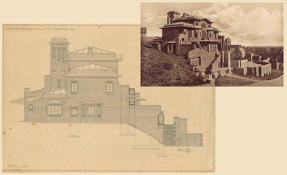 De Villa Ruys aan de Koepelweg 20, Noordwijk aan Zee. Architect was Willem Kromhout (die al eerder het Americain Hotel in Amsterdam had gebouwd) , bouwjaren 1915-1917. Kromhout kreeg in Noordwijk de kans om zijn hang naar monumentaliteit – in opzet en in hoogte – vorm te geven in de ‘muur Ruys’, zoals het vakantiehuis van de Rotterdanse industrieel door familieleden werd genoemd, of even plastisch ook wel “Het Fort van Ruys”. De tegen een duinwand gelegen villa had alle schijn van een vesting en was slechts bereikbaar via tal van opgaande terrassen en trappen. Inwendig waren de donkere woonvertrekken rond een centrale hal gegroepeerd. Kromhout ontwierp tevens het meubilair en de betimmering van de ‘herenkamer’. De Villa Ruys was een typische uitdrukking van de architectuuropvattingen van Kromhout, die het ontwerpen eens omschreef als het ‘boetseeren der kubieke massa’ met de baksteen als basismateriaal Rotterdam.