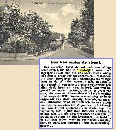 Het was een hilarisch bericht, Het Volk van 9 februari 1918 sprak zelfs van een ‘zonderlinge geschiedenis.’ Toestanden in de Noordwijkse Wilhelminastraat waar een koe door het riool ging, af en toe klagelijk loeiend, ondergronds nagezeten door een slager met diens knecht en bovengronds door paniekerig heen en weer hollend volk. Harry Lime in “The Third Man”, denk ik dan gelijk.