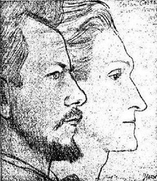 Waarschijnlijk van hun eerste ontmoeting in Noordwijk aan Zee in 1901 dateert bijgaand dubbelportret van Verwey en George van de hand van Jan Toorop. Het is een ets, door Toorop een beetje bijgetekend met potlood en inkt.
