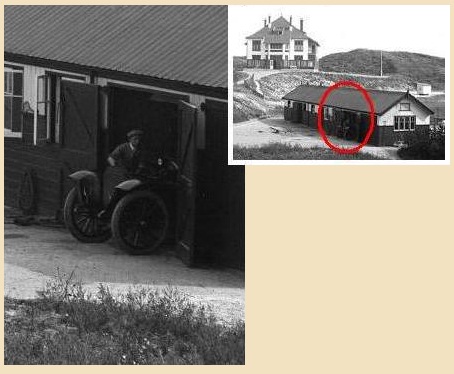 De foto toont de villa in al haar grootsheid in een ongenaakbare omgeving, maar eigenlijk is dat niet zo relevant. Relevanter is wat mij betreft – zoals zo vaak – datgene wat je op de foto bijna niet ziet: beneden in de garage, die bij Belvedère hoorde, wordt de chauffeur van de familie ‘betrapt’ op klein onderhoud. Hij staat bij een geopende motorkap van een vooroorlogs automobiel olie bij te vullen of zo, maar ziet desondanks de fotograaf op het tegenoverliggende duin en kijkt vanuit de diepte recht de lens in.