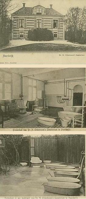 Bijgaande foto’s geven een beeld van de binnen- en de buitenbaden van dit sanatorium. Blijkbaar behoorde dat badderen tot de therapie die Oldenboom voorschreef.