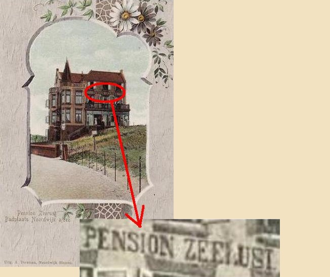 Zo nu en dan eens terugbladerend in dit Blog kom ik fouten tegen, waarvan ik niet meer weet hoe ik ze heb kunnen maken Van deze weet ik het wel. Pension Zeerust – een prachtig gebouw, dat naar zijn aard wel leek op de Villa Seehorst nabij de Noordboulevard – doopte ik aanvankelijk tot Zeelust. Dat kwam omdat ik het opschrift op de gevel zo las en bij het terugkijken kan ik me die ‘verlezing’ ook wel goed voorstellen. Zelfs uitvergroot kan de r nog steeds een l zijn, maar – ik geef toe – de l kan net zo goed een r zijn.