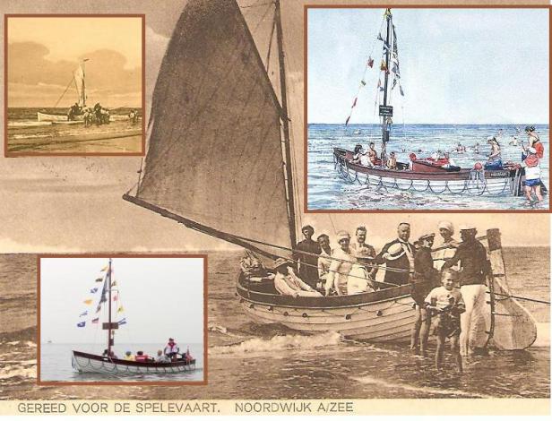 Er is nóg een recente afbeelding van de boot (rechtsboven): van de hand van kunstenaar Albert-Jan Cools, die ook nog andere, prachtige aquarellen van de (Noordwijkse) kust heeft gemaakt.