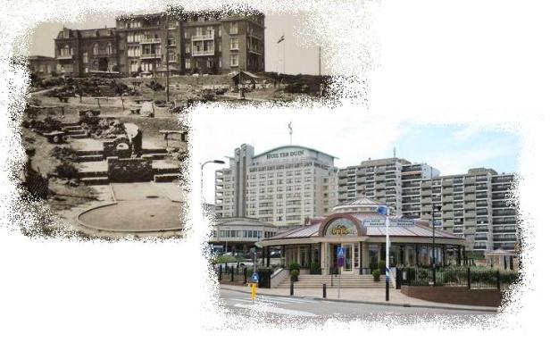 Het zal wel niet meer erg gelopen hebben, dat dwerggolf bij het oude Huis ter Duin. Beetje belegen spelletje was het natuurlijk ook wel. Ofschoon: op dezelfde plek is nu een postmodernistisch theehuis neergezet. Heeft ook iets belegens. Daarachter Het Nieuwe Huis ter Duin dat al veel eerder in de plaats kwam van Het Oude Huis ter Duin: zelfs het allereerste onderdeel van dit roemruchte hotel ging daarvoor tegen de vlakte: gebouwd in 1885 door architect A. Weissman, tevens bouwheer van het Stedelijk Museum in Amsterdam dat inmiddels ook al danig door het verkeerde modernisme wordt aangetast.