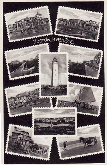 Je komt ze wel vaker tegen: ansichtkaarten, die in feite een optelsom zijn van verschillende andere ansichtkaarten. Makkelijk. Snel gemaakt. Zo erg als het hier is, heb ik ze nog niet meegemaakt: Noordwijk in tienvoud (10!) op één enkele kaart. Daarvoor moesten oude ansichtkaarten tot postzegelformaat worden teruggebracht en dat is hier ook – bijna letterlijk – gebeurd. Gek genoeg is er nog veel te ontwaren.
