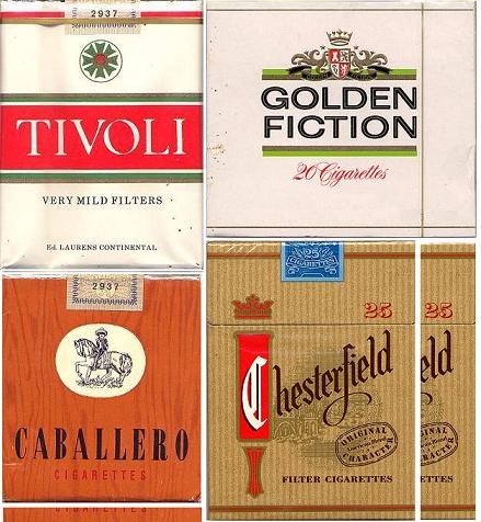 Als ik nog ff teruggrijp naar het vorige blog: daarin kwamen 4 sigarettenmerken voor die allemaal bij Ed.Laurens in Den Haag werden geproduceerd (misschien waren het er wel meer ook): Tivoli, Caballero, Golden Fiction en Chesterfield.