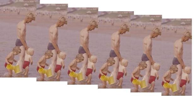 Je zag ze vaak op de Noordwijkse stranden, die Noordwijkse vaders. Alleen op zondag, want van maandagochtend vroeg tot zaterdagmiddag moesten ze hard werken ‘op het land’. Lange broek en overhemd met opgestroopte mouwen. Flessen karnemelk in het van 30 meter diep opgepompte ijskoude water. Moeizaam kruipend over de grond, hyacinten rooiend met de hand. Voorover gebogen met een krakende rug, irissen en gladiolen snijdend, waarvan er af en toe ééntje venijnig prikte in hun oog. Ze werden wel bruin, maar alleen in hun gezicht en op hun onderarmen. Verders niet. Wielrennerslijven. Vormloze zwembroeken van traag drogende stof, met de koters wadend door het kimmetje. Morgenochtend weer om zes uur op.