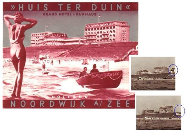Ik verbeeld me dat ze voor de betreffende sticker nog een mooie foto zochten. Die vonden ze in bijgaand exemplaar, ze retoucheerden hier en daar iets weg (de villa rechts bovenaan). En ze photoshopten er een mooie dame in die als een godin over het water loopt, alsmede een speedboot die een soort waterskier voorttrekt. En ze gooiden er een rode waas overheen en ze hadden opeens een bijzondere sticker annex bagagelabel. En die is nu te koop op ebay.com.