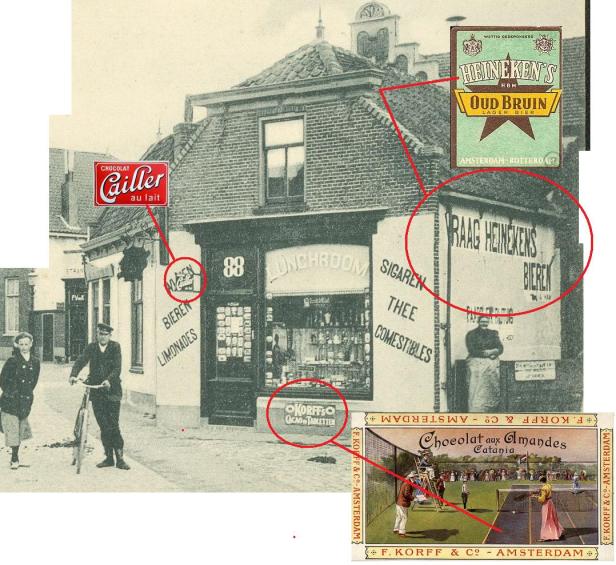 Het was een winkeltje waar van alles verkocht werd, er was geen plek meer over om alle waren aan te prijzen. Jammer genoeg is de foto niet zo scherp dat ik nog meer merkartikelen kan ontwaren, maar 3 pik ik eruit: 2 chocolademerken (Cailler en Korff) en een biermerk (Heineken).