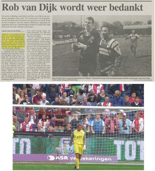 De tweede foto is bijna 17 jaar later (zeventien jaar later!!) genomen in de Kuip. Rob van Dijk keept nog steeds. En nog steeds in het eerste van Feyenoord. Na allerhande omzwervingen is hij terug in de Kuip. In één team met Biseswar, Fer en Wijnaldum. Jongens die zo ongeveer nog geboren moesten worden, toen Van Dijk al van Foreholte naar Noordwijk kwam.
