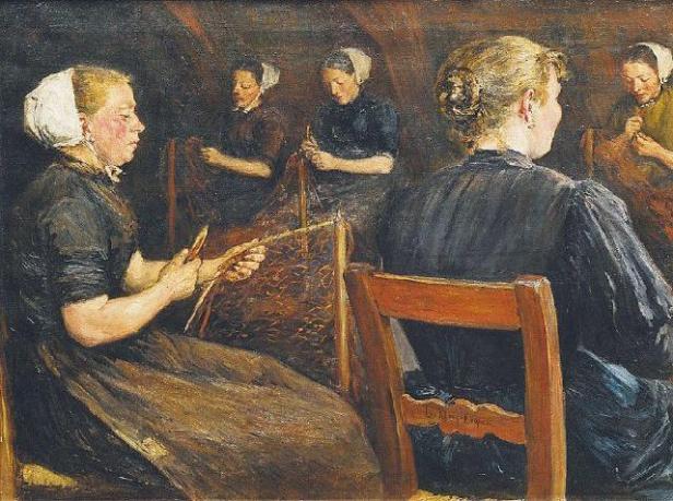Het Museum Oud-Noordwijk is in het bezit van enkele werken van Klein-Diepold. Er is een schilderij waarop de ‘skyline’ van Noordwijk is weergegeven, maar ik vind er nergens een afdruk van. Er is ook bijgaand schilderij – olie op hout – van nettenboetsters (“Netzknüpferinnen”), dat waarschijnlijk in Noordwijk is gemaakt. En er zijn de brieven van Vincent van Gogh aan zijn broer Theo, bezorgd door Jo van Gogh-Bonger, die door Leo vertaald werden in het Duits en bij Paul Cassirer in Berlijn werden uitgegeven. En zo komt alles allemaal weer samen: H. Marsman, Jo van Gogh, Paul Cassirer en Leo Klein-Diepold woonden alle drie gedurende korte of langere tijd in Noordwijk aan Zee. Enkele werken van Vincent van Gogh hingen iets verderop in een villa aan het eind van de duinen.