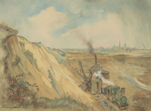 Wél als prettige verrassing bijgaand schitterend aquarel uit 1928 met de titel “Zanderij der Domeinen te Noordwijk” uit het Regionaal Archief Leiden.