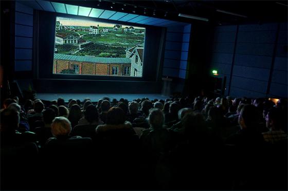 Variant op dat idee is een bioscoop waarin niet zomaar films worden geprojecteerd, maar waar je kijkt naar de beelden van een webcam die in het verleden staat opgesteld en ook op het verleden is gericht. Zoals deze mensen in de bioscoop met hun allen kijken naar de beelden van de webcam op het dak van een huis aan de Erasmusweg in Noordwijk aan Zee. In 1922 of daaromtrent.