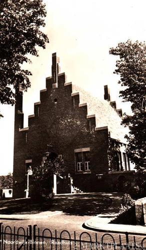 Hier is weer eens iemand volledig de weg kwijtgeraakt: dit is niet het raadhuis in Noordwijk-Binnen, zoals het onderschrift vermeldt, maar het raadhuis van Noordwijkerhout. Het werd gebouwd in 1930 door Alexander Kropholler, een naar mijn mening lelijk overschatte architect van de zgn. Delftse School (ambachtelijk materiaalgebruik, veel steunberen en traditionele, zo niet tuttige vormentaal (trapgevels!!!)).