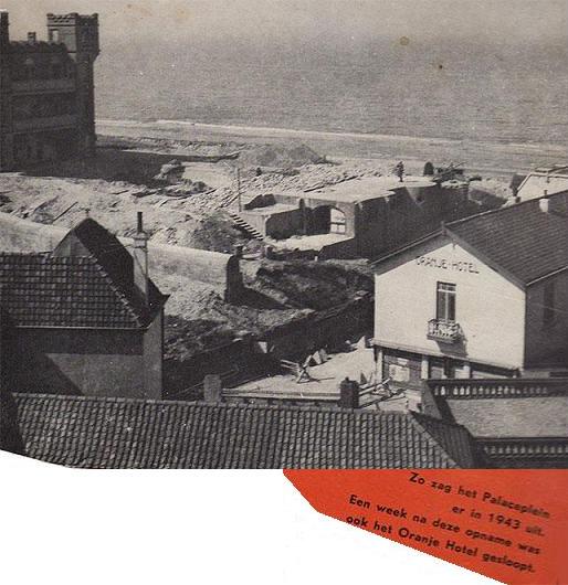 De foto is de allerlaatste – vermoed ik – van het Oranje Hotel, het voormalige hotel Van Ruiten ook al zo’n iconisch gebouw aan de boulevard. Op deze plek werd door de Duitse bezetter een mijnenveldje aangelegd, na de oorlog kwam er een parkeerplaats voor automobielen en dat laatste is het tot op de dag van vandaag (en zal het wel tot in eeuwigheid blijven).