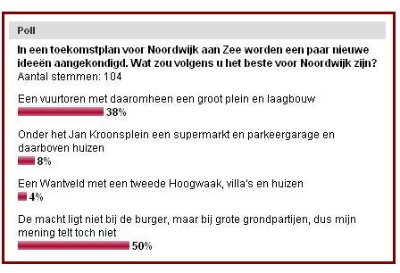 Meest opvallende score: de helft van alle gepeilden sombert er lustig op los: “de macht ligt niet bij de burger, maar bij de grote grondpartijen, dus mijn mening telt toch niet.” Die constatering is voor sommigen wel eens aanleiding geweest te revolteren, maar niet in Noordwijk.