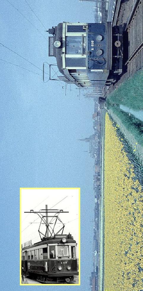 Op de zwart-wit foto (inzet) is het precies andersom: ook daar rijdt de tram richting Rijnsburg, maar hier staat opeens de A 615 vooraan en ligt de A616 op sleeptouw.
