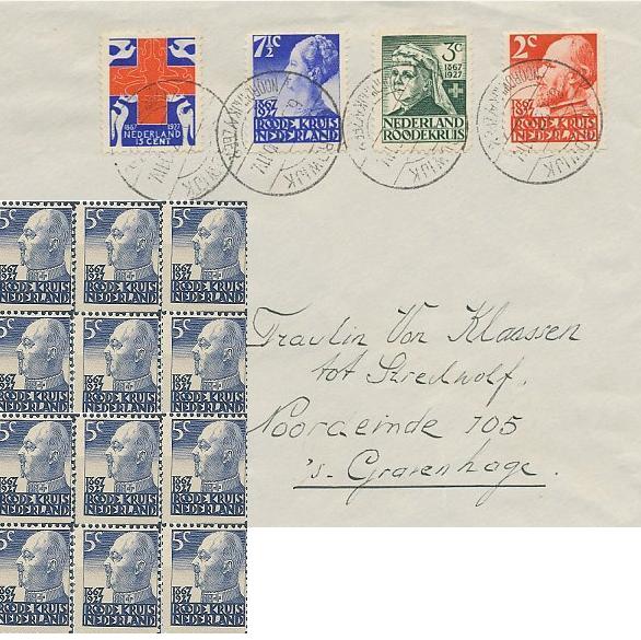 Relevant is die hele serie postzegels: herdenkingszegels van het Nederlandsche Roode Kruis, dat in 1927 50 jaar bestond en waarvan Hendrik beschermheer was. In de serie ontbreekt één zegel, nota bene de enige waarop Hendrik ooit is afgebeeld. Hare Majesteit de Koningin, noch de president-directeur van de Nederlandsche Posterijen vonden het blijkbaar nodig om Hendrik wat meer postaal eerbetoon te geven. En het is sneu, dat juist die ene zegel dan op deze envelop ontbreekt. Dan héb je eindelijk een zegel en dan wordt-ie niet gebruikt.