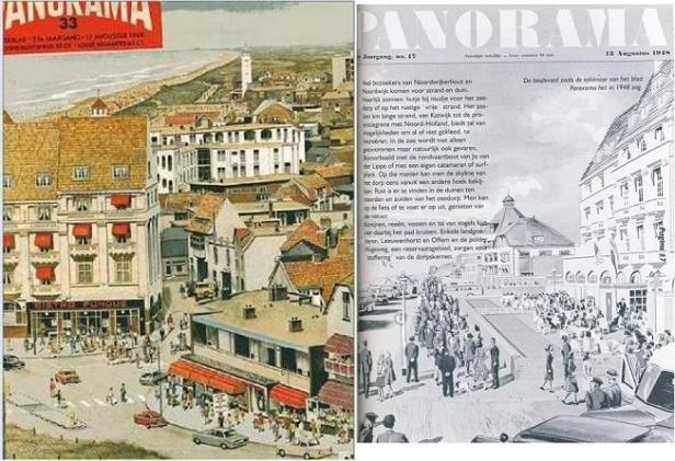Op 17 augustus 1968 kwam het weekblad Panorama uit met op de voorplaat een prachtige tekening van het Palaceplein in Noordwijk. Twintig jaar eerder – op 13 augustus 1948 – deed het weekblad hetzelfde, zij het dat de tekenaar toén om de hoek zat en de voorgevel van het Palace vereeuwigde. Ik neem aan ook in kleur. Maar ik heb voorlopig geen betere afdruk dan deze en moet dus antiquarisch nog op zoek naar die Panorama. Eigenlijk naar alle twee. En misschien naar alle vier, want wellicht heeft de Panorama ook in 1988 en 2008 pogingen gedaan om het Palace opnieuw vast te leggen. Mislukte pogingen ongetwijfeld. Want het Palace was toen al niet meer.