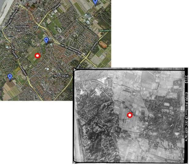 Een soort van Google Earth avant-la-lettre: vergelijk de ene kaart maar eens met de andere. Wat opvalt is dat de beide Noordwijken zowel in de lengte aan het groeien zijn als in de breedte. En dat ze in dat laatste steeds dichter bij elkaar komen (met dank aan Klaas)