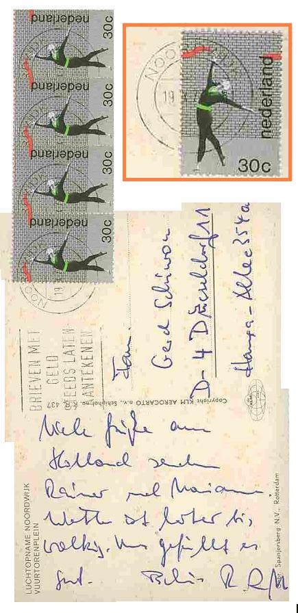 Ik zou het nog eens uit moeten zoeken: wanneer deze zegel precies verscheen en door wie die ontworpen was. Een prachtige ‘doorloper’ zoals dat in een filatelistische kring heet, zij het dat dat op het eerste gezicht niet duidelijk is. Naast de koeien en de tulpen is het misschien wel de mooiste doorloper die ooit door de PTT op de markt is gebracht.