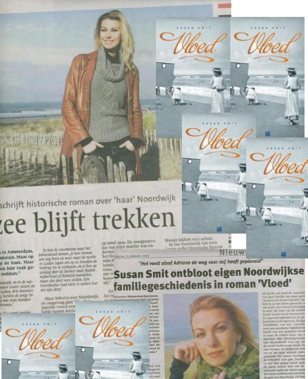 Op 21 januari a.s. wordt in Noordwijk het nieuwe boek van Susan Smit gepresenteerd. “Vloed!” speelt zich af in het Noordwijk van rond de voorvorige eeuwwisseling. De presentatie vindt plaats in “Klooster aan Zee” in Noordwijk (where-ever that may be, want ik heb er nog nooit van gehoord). Besloten bijeenkomst, alleen genodigden (ik heb nog niks gehoord, maar ben ook niet notabel).