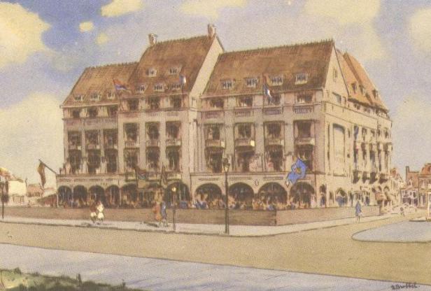 Het aquarel van het Palace Hotel in Noordwijk is gemaakt door ene ‘B. Brobbel’. Zo is dit werk ook gesigneerd. Als je verder zoekt op die naam kom je uit bij Bob ‘Bonefacius’ Brobbel, illustrator en performer. Het bijschrift bij de kaart vermeldt dat het betreffende aquarel stamt uit de jaren vijftig. Maar Bob Brobbel was volgens zijn eigen website geboren in 1945. Hij moet dan ook jong aan de maat geweest zijn, toen hij het Palace op deze prachtige wijze vereeuwigde. Maar alles kan.