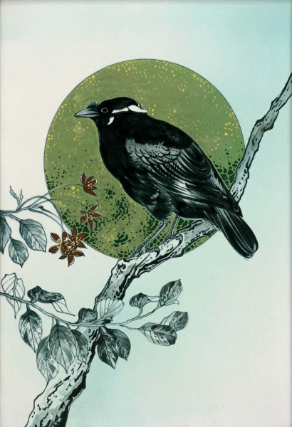 De tegel van de beo is inderdaad van Henri Breetvelt. Ik ben in het bezit van een vergelijkbare tegel met een appelvink. Geschilderd naar prenten Kōno Bairei (1844 – 1895) was een Japanse schilder, boekillustrator en tekenleraar. Hij is geboren en woonde in Kyoto. Hij was lid van de Ukiyo-e school en was een meester in kacho-e schilderen in de Meiji-periode van Japan.