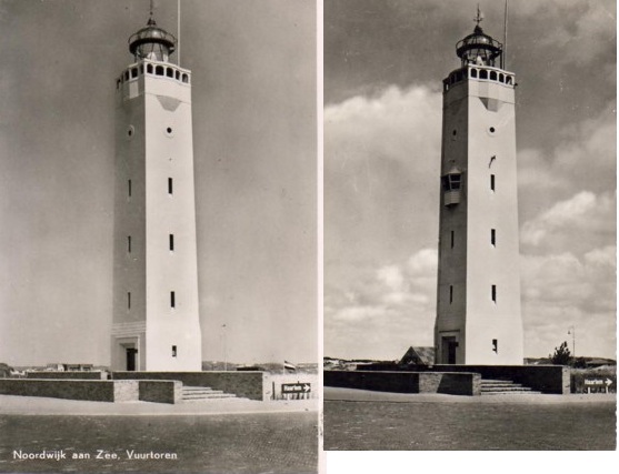 Maar de werkelijkheid was veranderd: het erkertje op de vuurtoren was erbij gekomen. En ook – links van de toegangsdeur van de vuurtoren – de loods van de Noord- en Zuidhollandsche Reddingsmaatschappij.