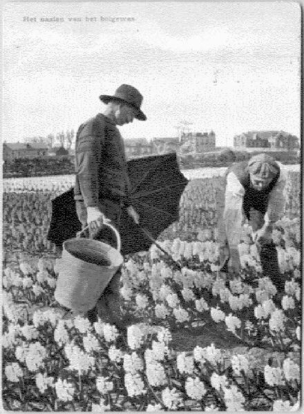 Er was een oud-oom – een zwager van mijn grootvader – die ook werd ingezet. Hij liep volgens grootvader met een waanzinnige gang door de paden, keek meer in de blauwe lucht dan op de – in dit geval – hyacinthenbedden beneden hem en merkte daarom niet op dat hele bunders vergeven waren van het ‘aaltjesziek’. De gevolgen waren even desastreus als de uitstoot van een gemiddelde IJslandse vulkaan: het betreffende land mocht in jaren niet meer bebouwd worden, aangetast als het was door de onoplettendheid van Oom T.