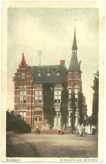 Het Raadhuis van Noordwijk maakt in zichzelf al een mooi plaatje, maar hier is iemand met succes bezig geweest om het allemaal nóg mooier te maken. Met fijnheid en precisie en goede smaak de hele bliksemse boel prachtig ingekleurd. Ik vermoed – ook aan de kleding van de poserenden te zien – dat het gaat om een beeld van kort na de eeuwwisseling. Er is nog geen bovenleiding voor de elektrische tram die pas in 1912 kwam (of de bovenleiding moet zijn weggephotoshopt, dat kan ook).