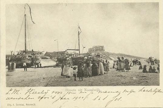 De bomschuiten liggen nog op het strand, maar achteraan staan de badkoetsen die Noordwijk in die nieuwe eeuw zouden verheffen tot een mondaine badplaats. Op het hoge duin lijkt driftig te worden gebouwd aan het Grand Hotel en Kurhaus ‘Huis ter Duin”. Of vergis ik me?