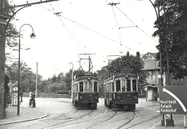 Dat je als tram hier links af moest, wist je zelf ook wel, of je nu naar Katwijk of naar Noordwijk ging. Per slot van rekening lag dit baanvak er al bijna 80 jaar. Maar goed, je kon ook rechtsaf. Dan ging je richting Sassenheim. Lisse en verder, naar Haarlem. ´Keukenhof´ is volgens het bord ook linksaf, maar dat lijkt me een fikse omweg.
