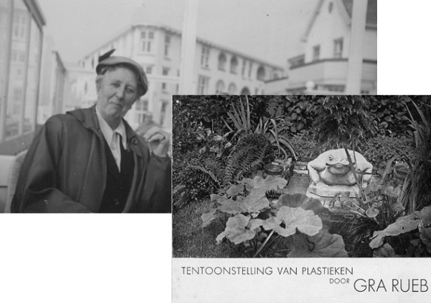Gerharda Johanna Wilhelmina (Gra) Rueb (1885-1972 was reliëfkunstenaar, beeldhouwster, keramiste en medailleur. Ze werkte in cement, brons en gips en terracotta en heeft een keur van beelden, plastieken, medailles, monumenten, reliëfs, etc. nagelaten. Er is een prachtige site, waarop haar leven en werken mooi en met liefde zijn gerangschikt.