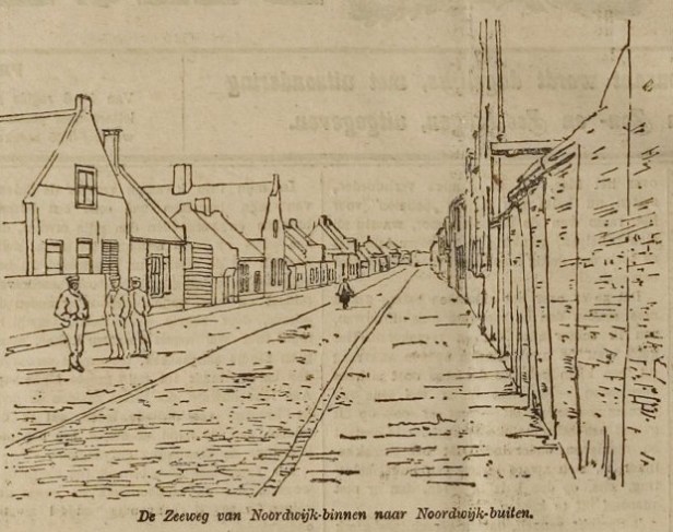 Het is de Zeeweg van Noordwijk-Binnen naar Noordwijk-Buiten en als je het bijbehorende verslagje uit de krant erbij leest, zou je denken dat je hier met de huidige Zeestraat te maken hebt. Maar ik zie het er niet vanaf. Om te beginnen ontbreekt er al een tramrails en verders stonden er volgens mij niet zoveel huizen in de Zeestraat rond 1898. Er stonden wel één of twee boerderijen, maar die zie ik hier ook niet.