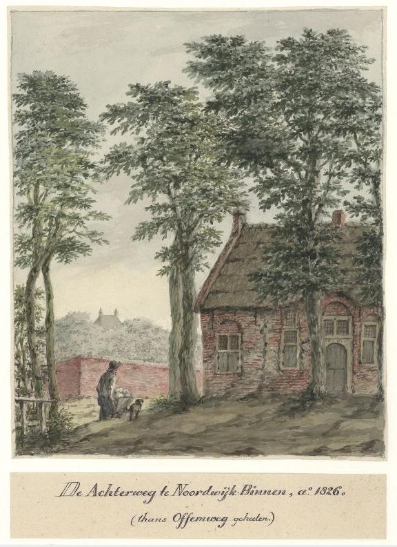 Dezelfde kunstenaar als in Af en Toe 224, ander beeld. Hier gaat het om de Achterweg anno 1826. Maar er staat ook ‘thans Offemweg geheeten’. Wat is ‘thans’?