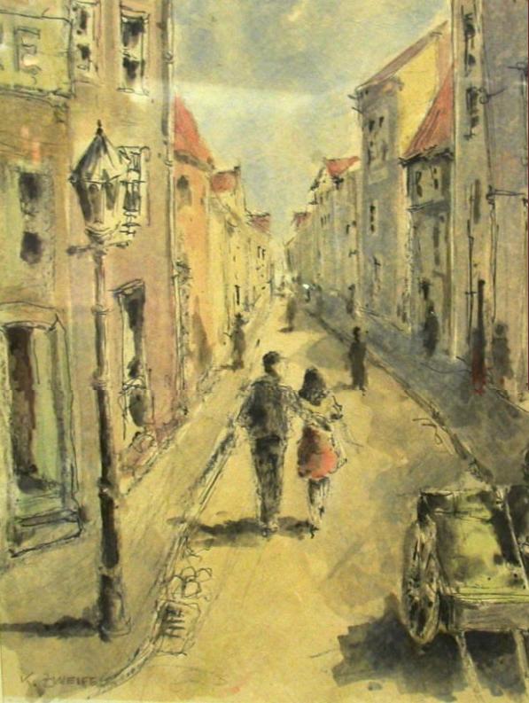 De schilder is ene K. Zweifel, maar over hem of haar is vrijwel nergens ook maar iets terug te vinden. Er is ook geen datering van het schilderij. “Gemengde techniek op schilderskarton”, onder glas ingeraamd.