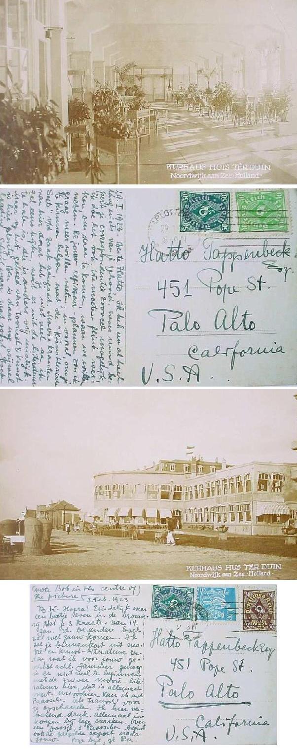 Het zijn in retrospectief eigenlijk wel ontroerende kaarten. Rudolf (‘Ru’) Tappenbeck schrijft ze – begin 1923 – aan zijn broer Hatto, die naar Palo Alto/VS is gegaan om daar filmregisseur te worden. Ik weet niet of ze elkaar daarna nog ooit hebben gezien.