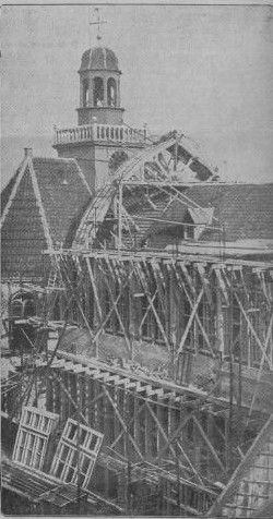 De Neder-Duitsch Hervormde Kerk te Noordwijk dateerende uit 1647 zal worden afgebroken, terwijl op dezelfde plaats een grootere kerk zal verrijzen. Alvorens echter het oude gebouw af te breken wordt het nieuwe hier omheen gebouwd. De voorgevel met den toren zullen echter voorloopig nog moeten blijven staan, daar de gelden voor de verbouwing nog niet bijeen zijn.