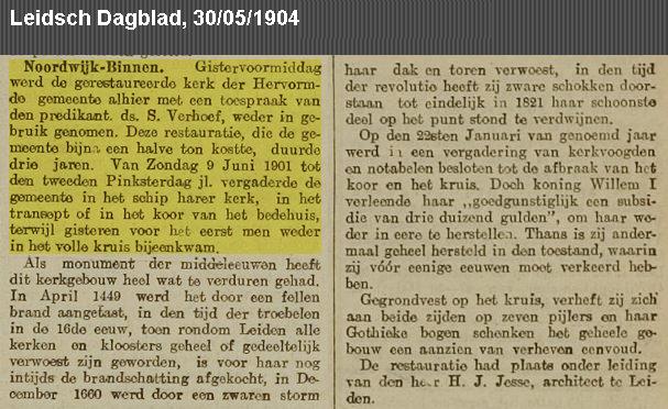 Het is toch intrigerend om op de foto in het vorige blog te zien dat de Grote Jeroenskerk in restauratie is, zonder daar verders al te veel van af te weten. Dus ga je op zoek in de krantenleggers van het onweerstaanbare Regionaal Archief voor Leiden en Omstreken en dan vind je bijgaand bericht.