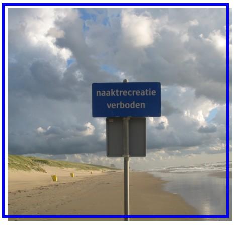 Troost: op het bord aan de andere kant van de paal staat waarschijnlijk: ‘naaktrecreatie toegestaan’.
