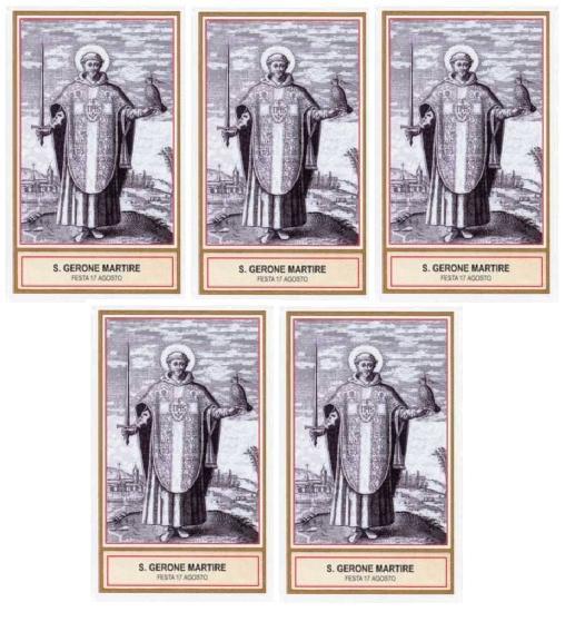 Geloven of niet-geloven. In Italië hebben ze geen moeite met ‘S. Gerone, Martire’, want daar komt dit bidplaatje vandaan.