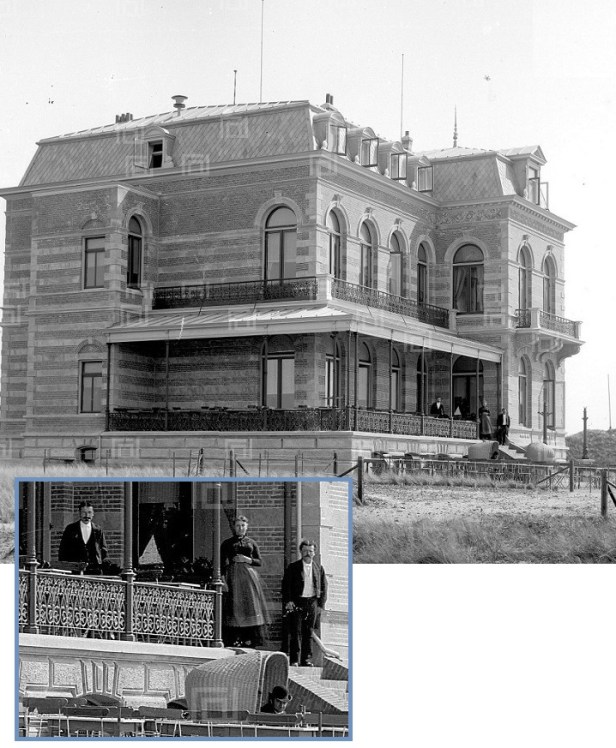 We hadden het onlangs over Huis ter Duin en dit en dat en of dat wanneer de eerste versie van dit hotel nu geopend werd. Als ik deze foto zie denk ik dat het er allemaal niet toe doet. Dit is waarlijk de eerste echte foto van het allereerste Huis ter Duin, dat toen waarschijnlijk nog niet zo heette. Ik schat 1885 op zijn laatst.