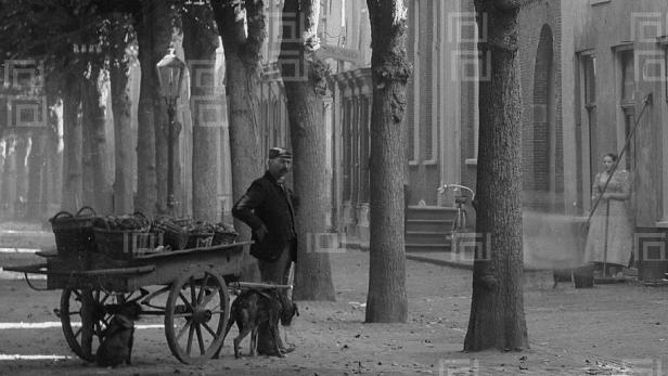 Deze foto van een man met hondenkar op de Voorstraat in Noordwijk-Binnen dateert van het einde van de vóórvorige eeuw. Het beest ziet er mager en treurig uit onder de last van de kar. Een vriendje van ‘m zit aan het andere eind van de kar voor morele steun, zijn baas is bezig met zijn eigen ijdelheid en heeft geen oog voor het lijden van het dier.
