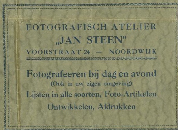 Heel Noordwijk kende hem overigens als ‘Jan Steen’, gelijk de schilder met zijn spreek-woordelijke huishouden. Maar deze Jan Steen heette eigenlijk "Jan van der Steen". Zelf tilde hij daar verders ook niet zo zwaar aan blijkens bijgaand mapje waarin hij de eenmaal ontwikkelde en afgedrukte foto’s weer bij de klant bezorgde.