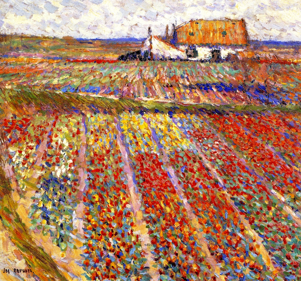 We hebben het wel eens eerder over Joe Raphael gehad, een Amerikaanse impressionist die zijn schilderende leven grotendeels doorbracht in de Lage Landen, achtereenvolgens in Laren, Ukkel (B) en Oegstgeest. Vlak voor de oorlog keerde hij terug naar San Francisco, als een redelijk gevierd schilder (in Amerika hadden ze daar weinig van).