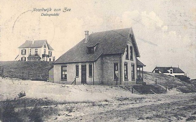 Ik toverde onlangs het bovenste plaatje te voorschijn met de aantekening dat ik bij Jove niet wist waar of dat die foto überhaupt genomen was. Nu begrijp ik wel waarom. R. attendeert mij op het huis op de hoek van Koepelweg en Javastraat (kleurenfoto uit GoogleMaps). Het huis stond aanvankelijk in het duin aan een geitepad dat misschien als oorsprong voor de Koepelweg diende. Maar de Javaweg was er nog niet en dan is het beeld wel vertekend.