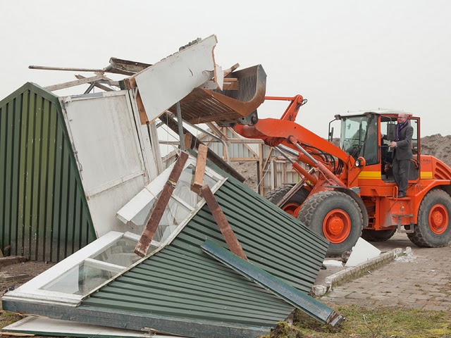 De wethouders De Lange en Vroom bedienen samen de shovel om deze “shame-plek” tussen Beeklaan en Hogeweg in Noordwijk schoon te vegen. Er moeten hier huizen komen, vandaar. Hepi en Hepi, de Gebroeders Hekking Revisited. Samen op de foto, voor de zoveelste keer.