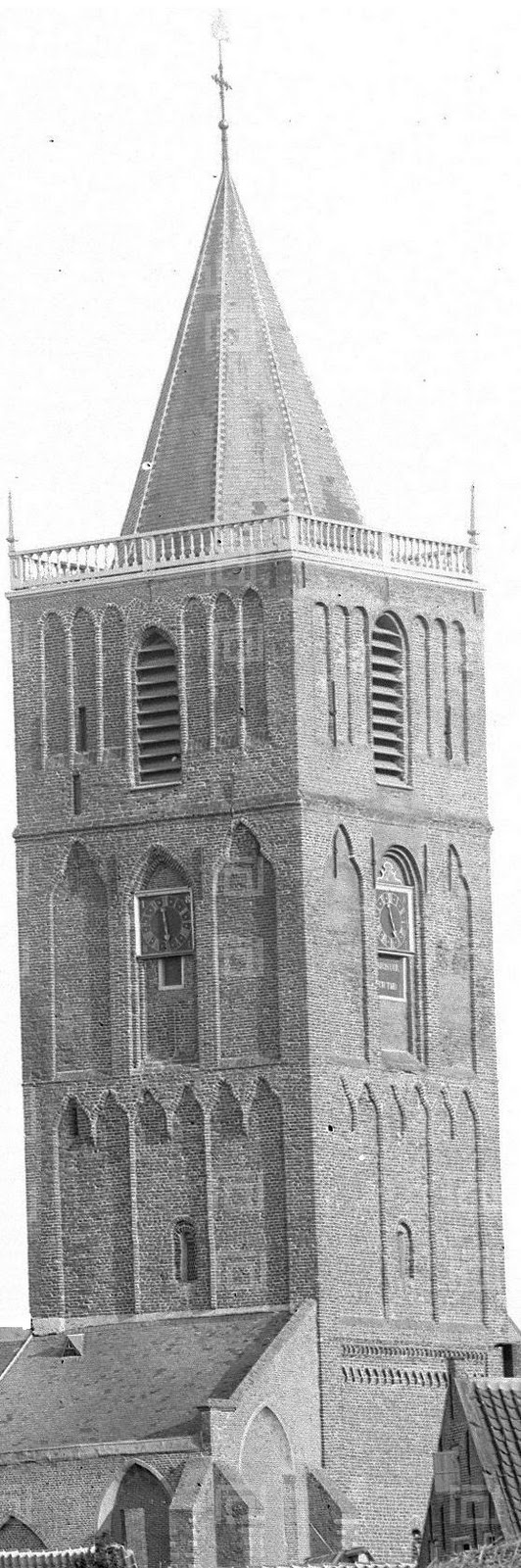 De galmgaten en -borden hangen nog boven de wijzerplaten van de klok, tegenwoordig is dat andersom. Op enig moment hebben ze de klokken naar beneden gebracht, misschien omdat ze te veel en te ver lawaai maakten? De wijzerplaten van de klok zijn ook vervangen.