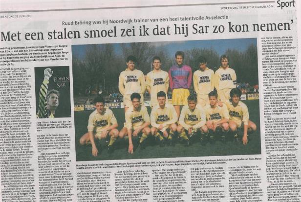 In het Leidsch Dagblad van vandaag een kloeke voorpublicatie uit het boek. Met een foto van de Noordwijk A1 van 1988-1989 die ik nog niet kende. Sar in een kokette gele broek. Ik kende wel een andere foto van de A1. Die gebruikte ik in een eerder blog.